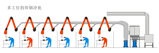 5、利用可360度隨意活動的萬向吸臂,可從煙氣發(fā)生處吸除煙氣,大大提高了煙塵的收集率,保證了作業(yè)人員的健康。